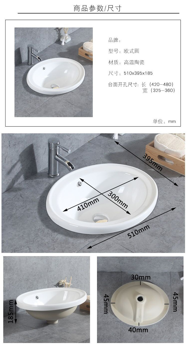 臺上盆橢圓形方形臺中盆半嵌入式洗臉盆陶瓷盆面盆 橢圓形臺上盆