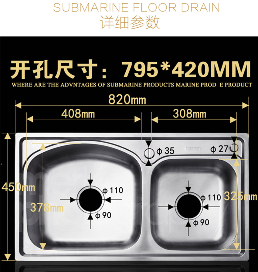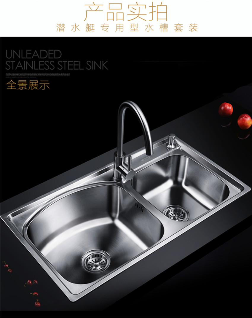 水槽雙槽菜盆不銹鋼加厚水池洗菜盆水龍頭提籃防臭下水管套裝 雙槽菜盆套裝