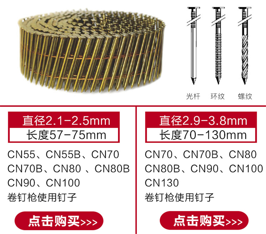 螺紋釘光桿釘CN1234567890卷釘槍釘子木屋包裝箱托盤釘 2.3*55mm螺蚊卷釘