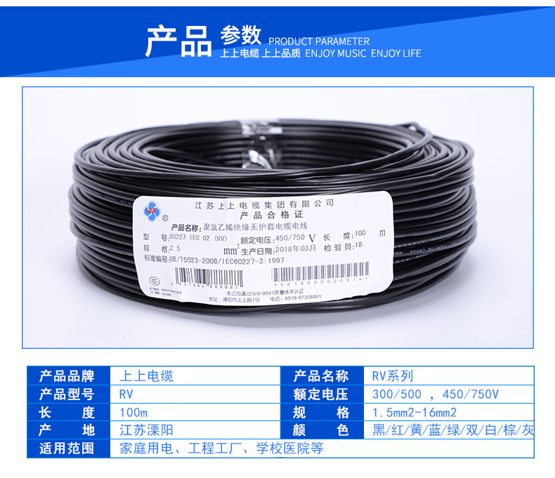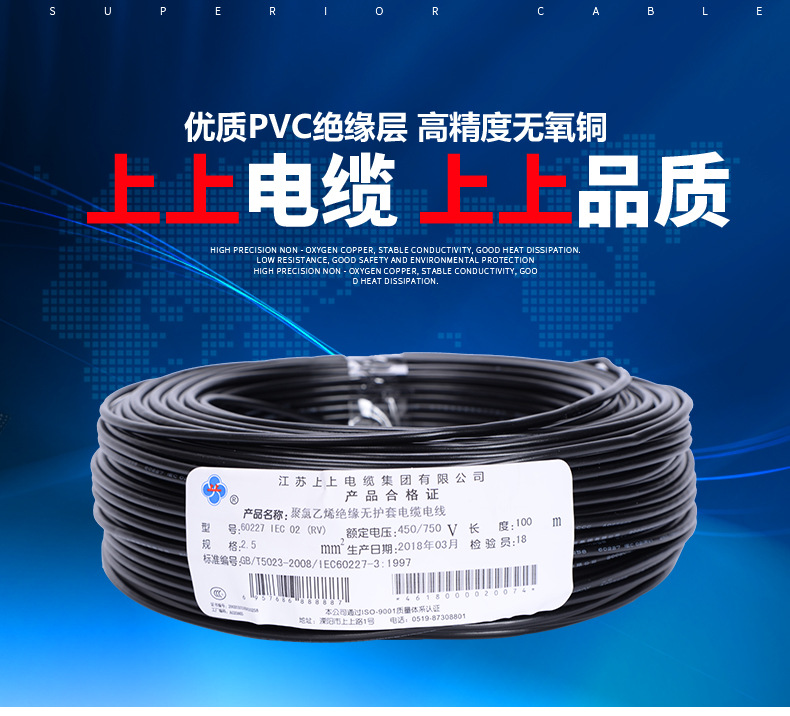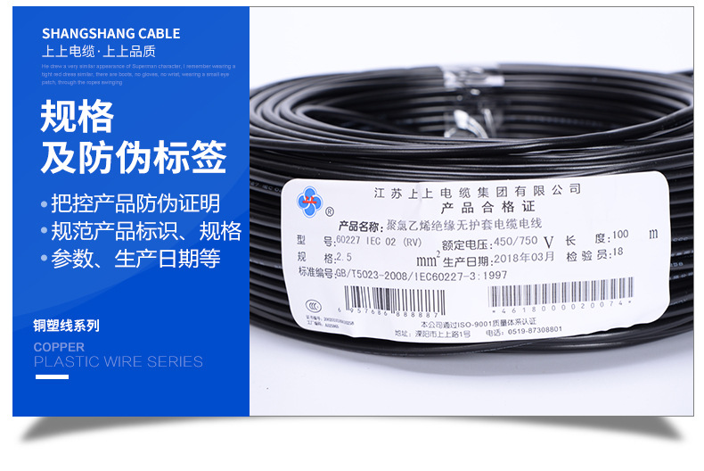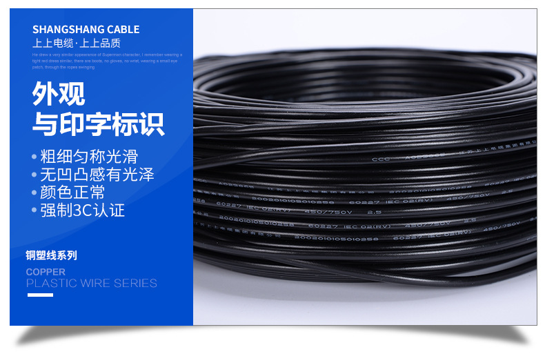 上上電纜RV系列單芯軟線絕緣銅塑線