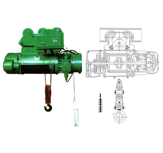 BCD型防爆鋼絲繩電動葫蘆主體可懸掛在工字梁軌道上作直線或曲線運行,或安裝在固定支架上,作為起吊重物之用。可以根據(jù)不同使用要求,同防爆單梁懸掛起重機或雙梁橋式起重機配套使用。