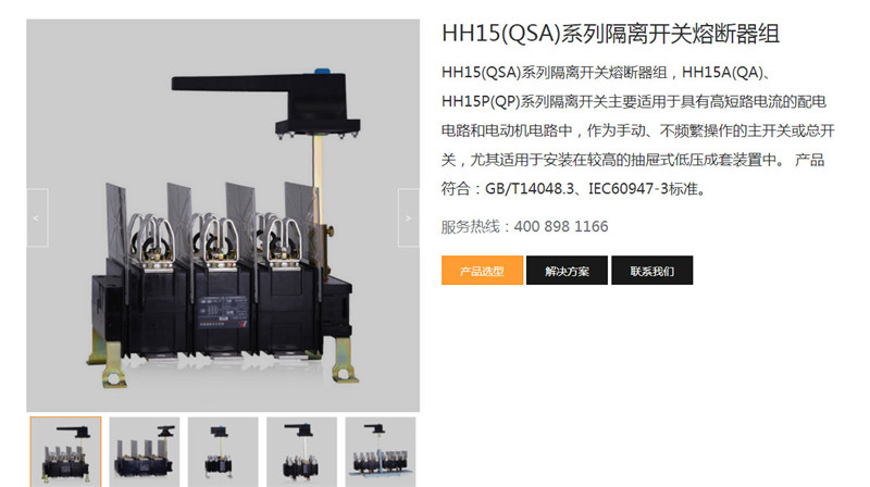HH15(QSA)系列隔離開關熔斷組,HH15(QA)、HH15P(QP)系列隔離開關主要適用于具有高短路電流的配電電路和電動機電路中。