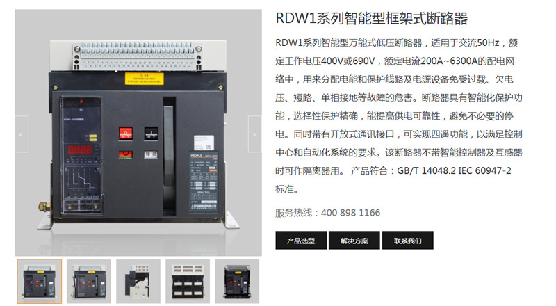 RDW1系列智能型框架式斷路器,適用于交流50Hz,額定工作電壓400V或690V,額定電流200A-6300A的配電網(wǎng)絡中,用來分配電能和保護線路及電源設備免受過載、欠電壓、短路、單相接地等故障的危害。