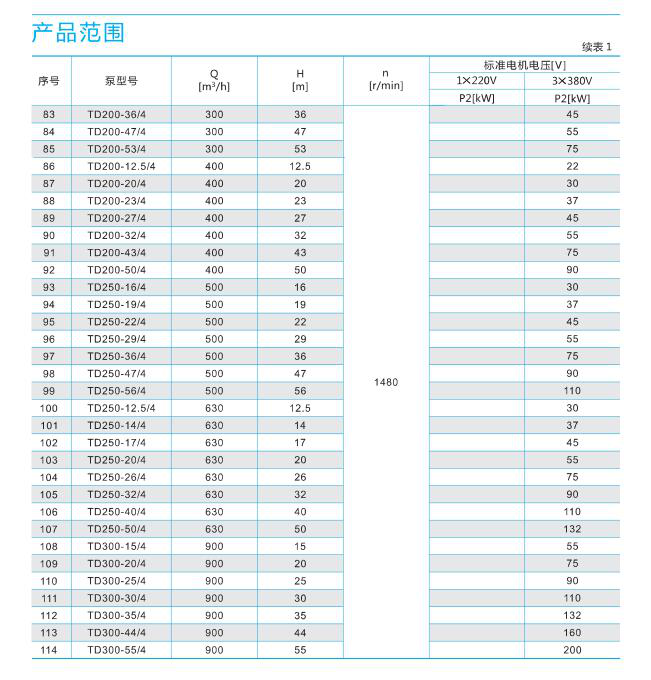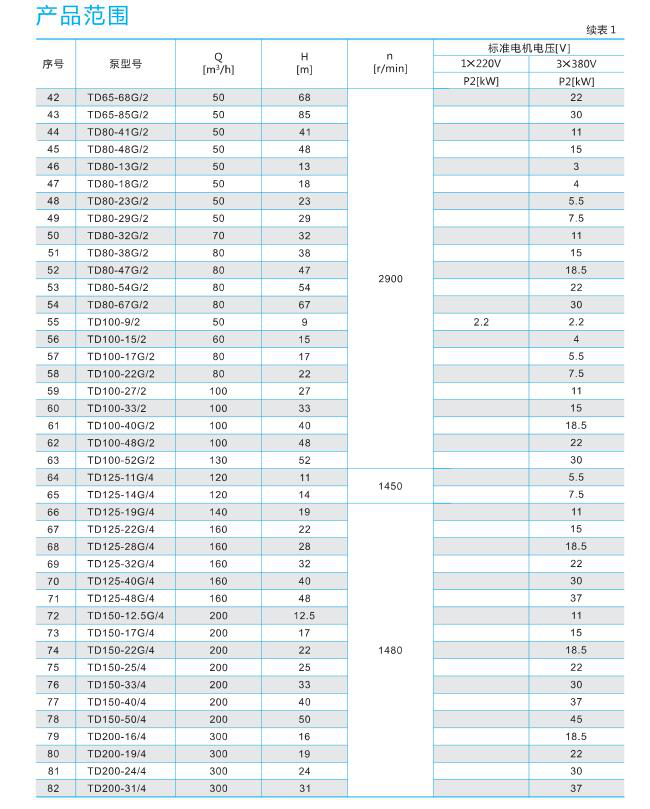 鑄鐵產品說明:南方泵業(yè)TD單級立式管道循環(huán)泵,泵進出水口在泵底同一直線上,產品設計為頂部可拉出的拆裝形式,其可以在不影響管路系統(tǒng)的情況下對泵進行維修。性能及優(yōu)點:結構緊湊