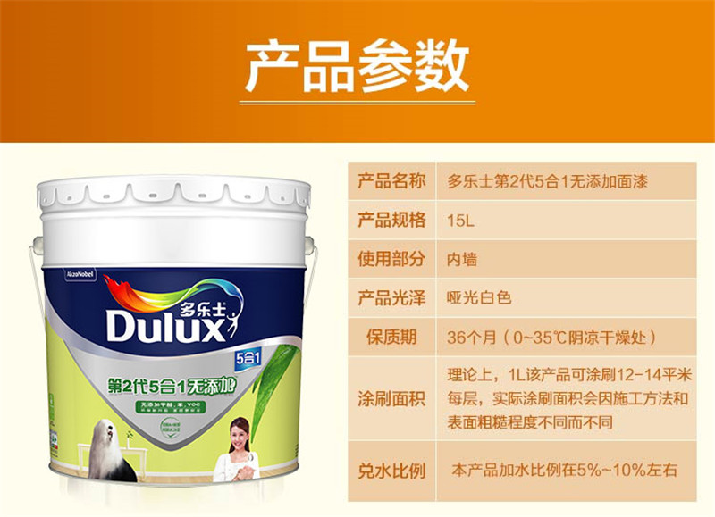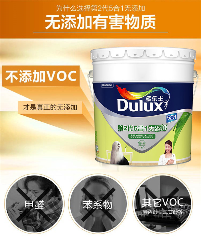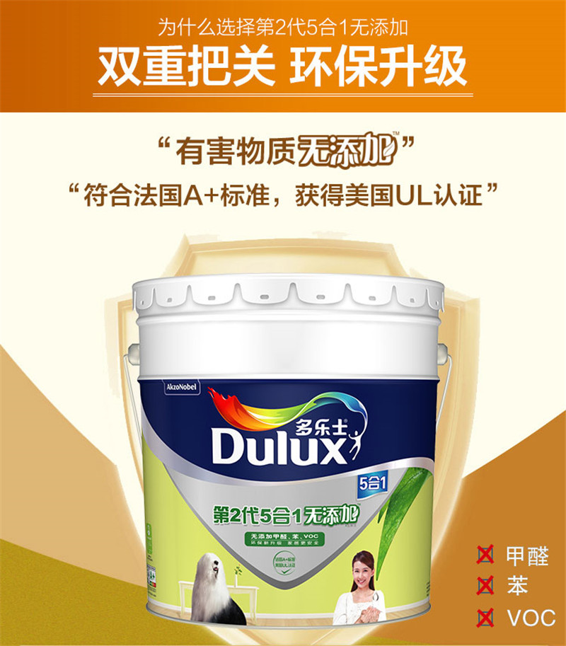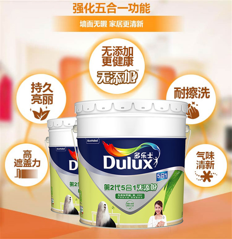 多樂(lè)士(dulux)A611 第二代五合一無(wú)添加 內(nèi)墻乳膠漆 油漆涂料 墻面漆白色