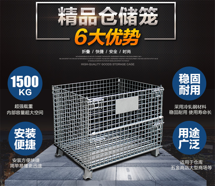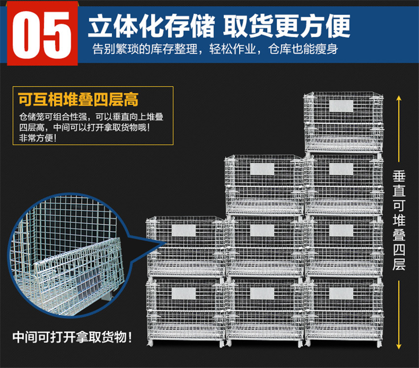 倉(cāng)儲(chǔ)籠 鋼鐵貨架帶輪子折疊式物流周轉(zhuǎn)筐 倉(cāng)儲(chǔ)籠車 金屬網(wǎng)鐵絲籠架