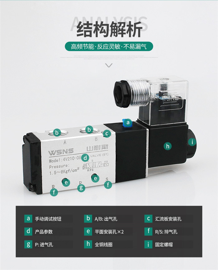 山耐斯電磁控制閥4V210-08 4V310-10二位五通氣缸換向閥氣動閥24V