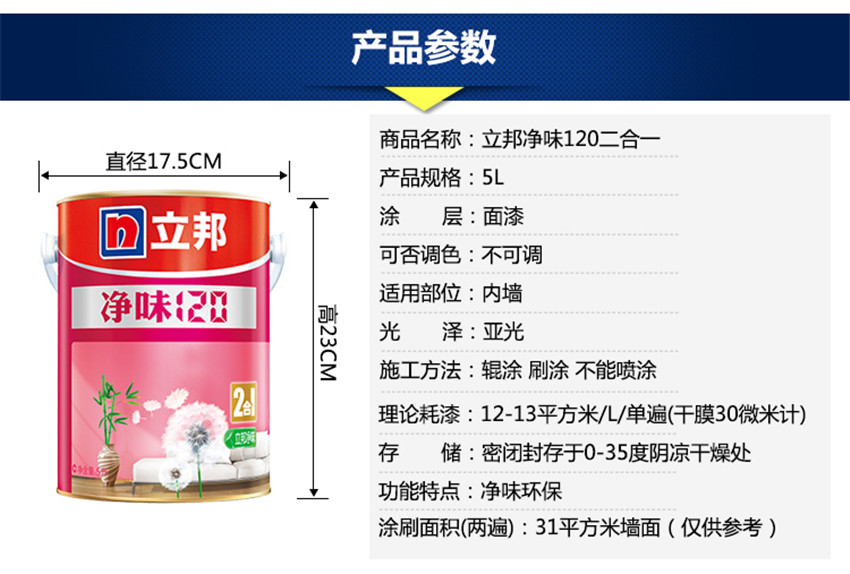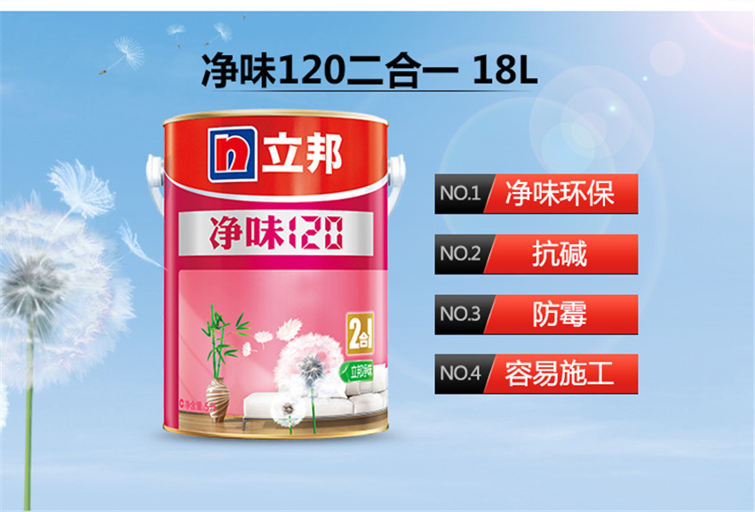 立邦漆 凈味120二合一 水性環(huán)保乳膠漆油漆涂料內(nèi)墻白色面漆