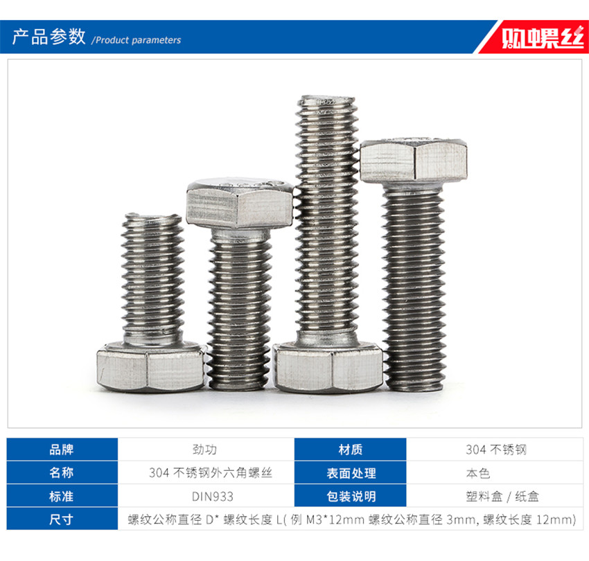 不銹鋼外六角螺絲螺栓不銹鋼六角頭螺栓六角螺絲