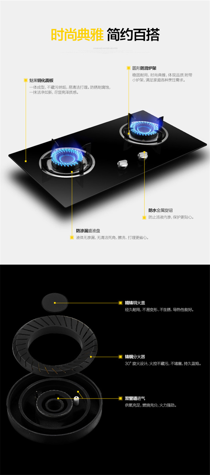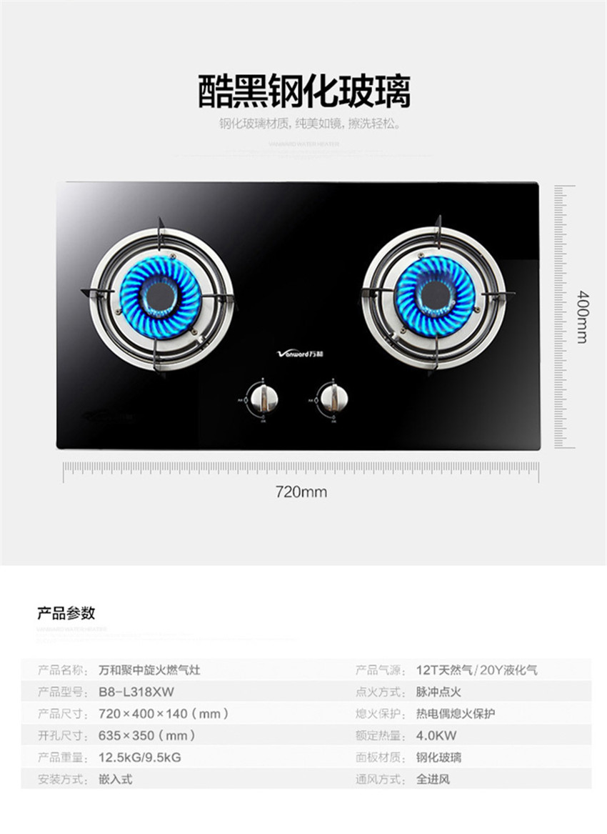 萬和大火力鋼化玻璃臺式嵌入式兩用燃氣灶 升級聚中旋火 雙環(huán)猛火