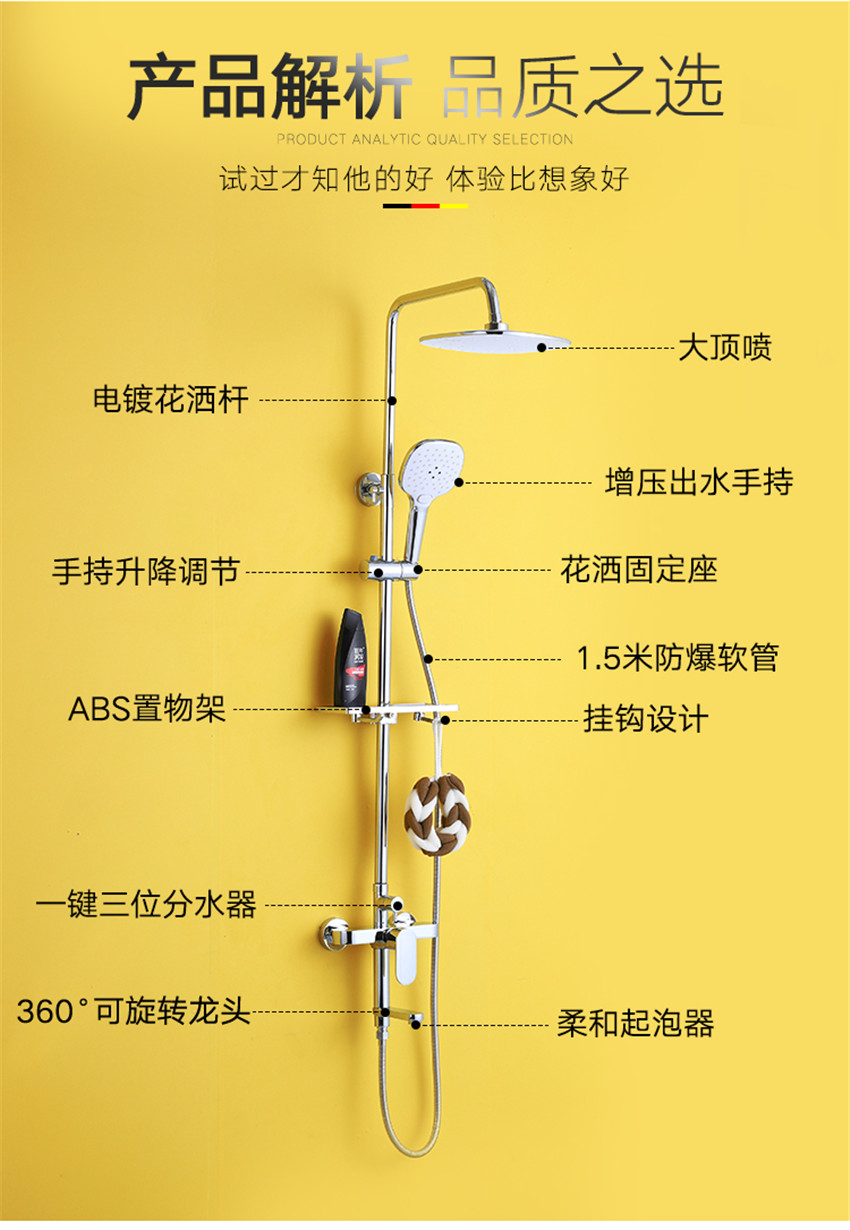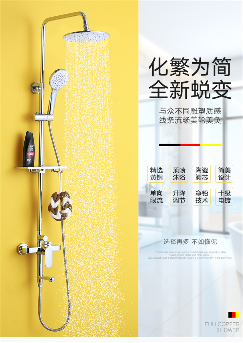 馬可波羅花灑家用全銅淋浴套裝冷熱龍頭增壓頂噴升降沐浴噴頭花灑