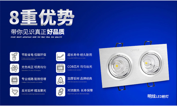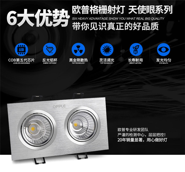 歐普led射燈雙頭cob格柵斗膽燈嵌入服裝店背景墻客廳走廊過道燈