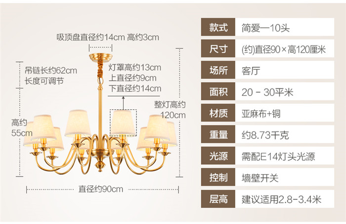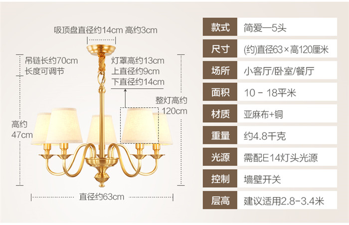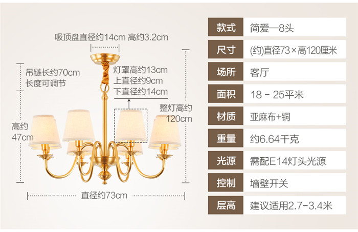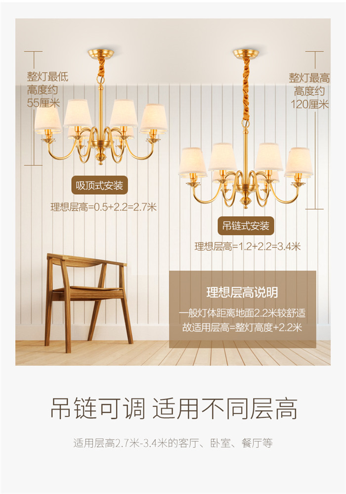 歐普照明美式吊燈客廳燈全銅燈餐廳臥室現(xiàn)代簡(jiǎn)約大氣燈具DD