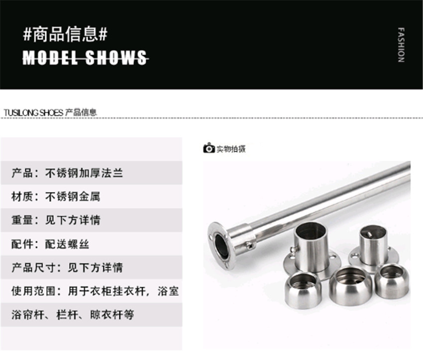 加厚重型不銹鋼法蘭座衣柜桿配件高腳圓管座托