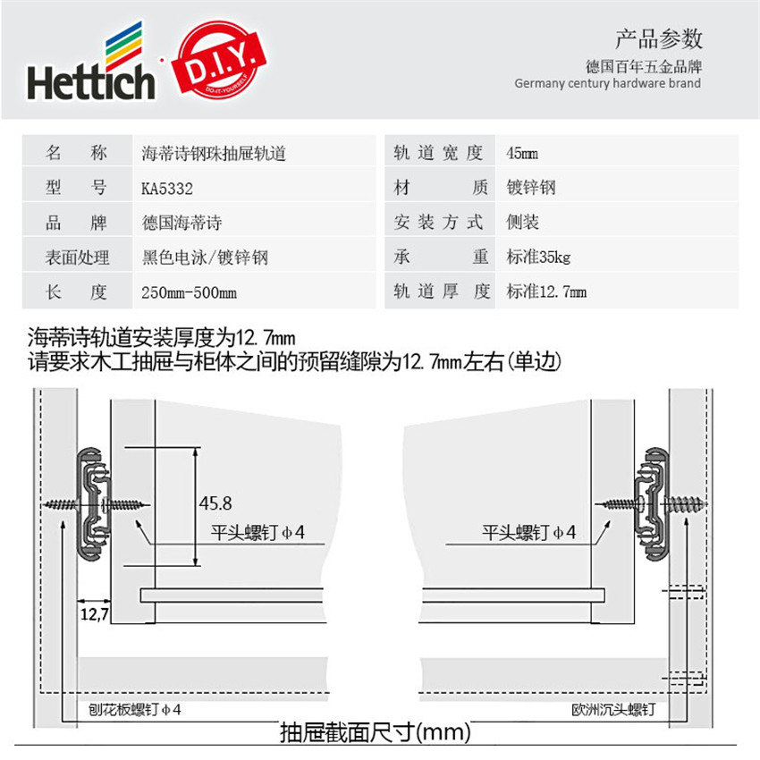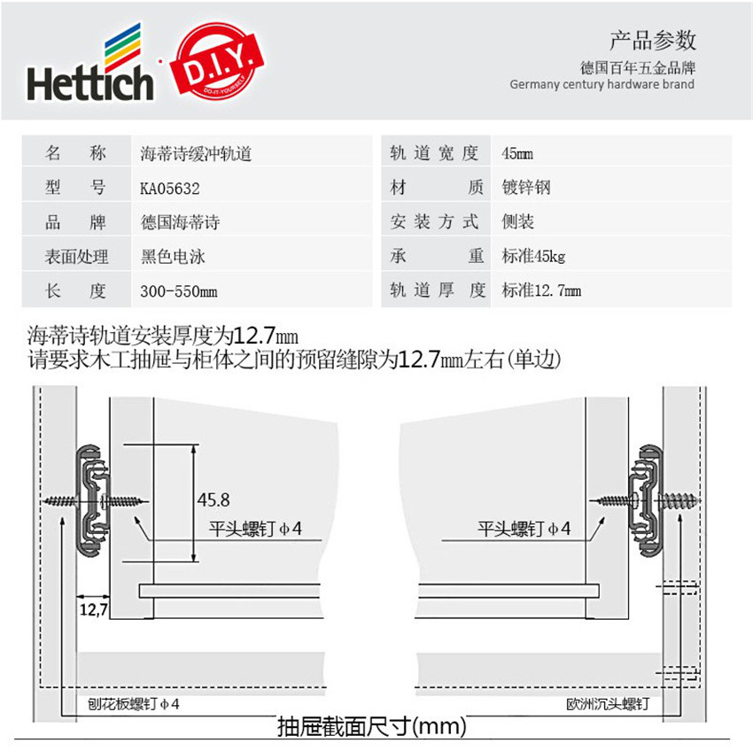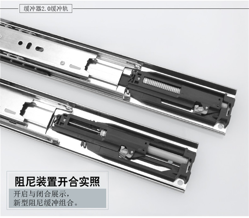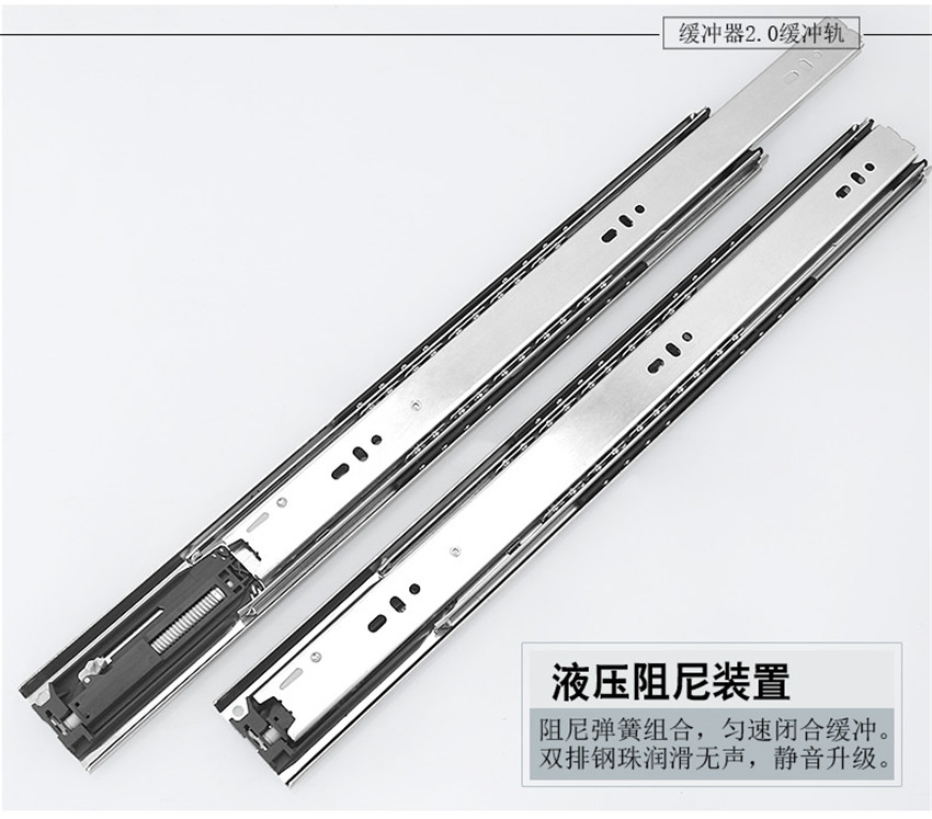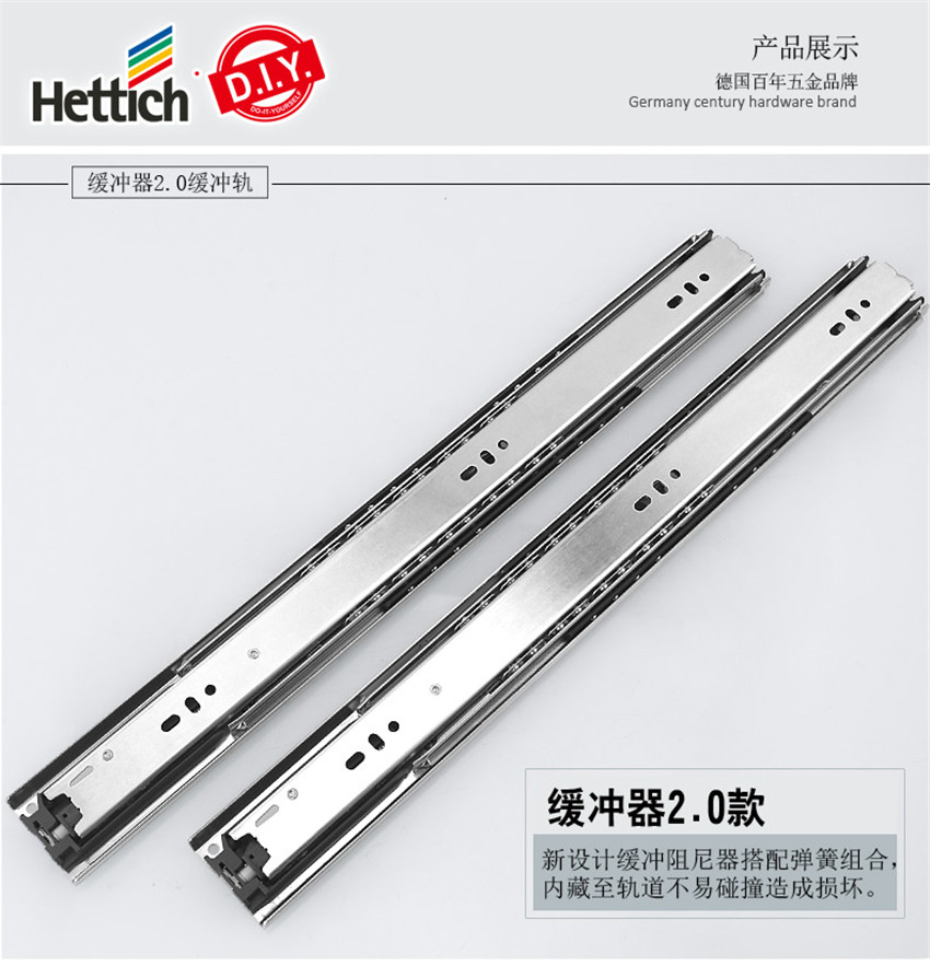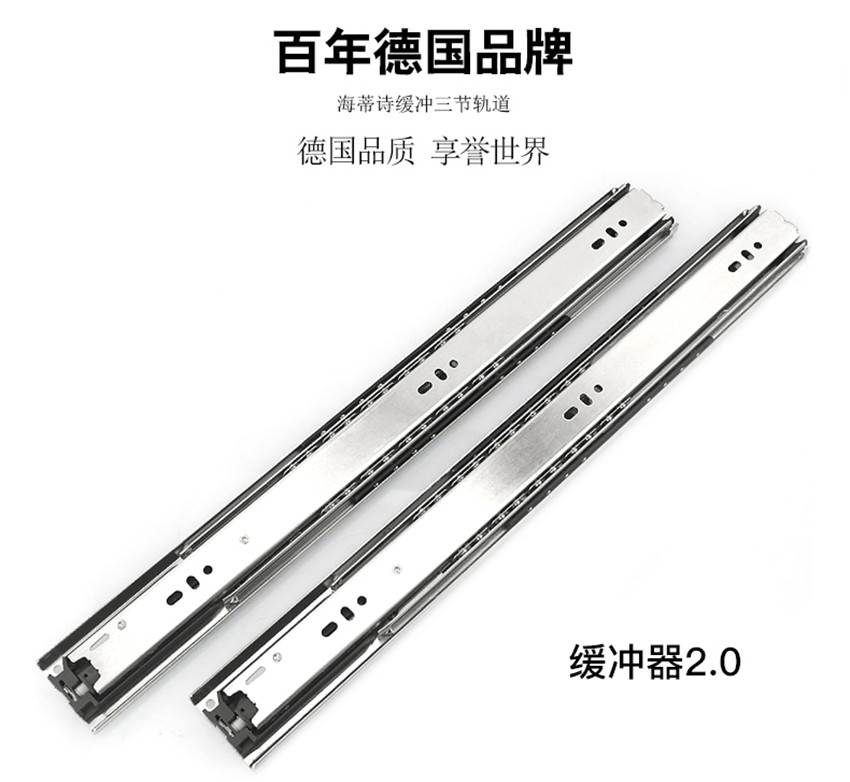 德國海蒂詩 阻尼緩沖抽屜軌道滑軌三節(jié)櫥柜滑道導(dǎo)軌靜音加厚 升級A款(液壓阻尼)鋼色