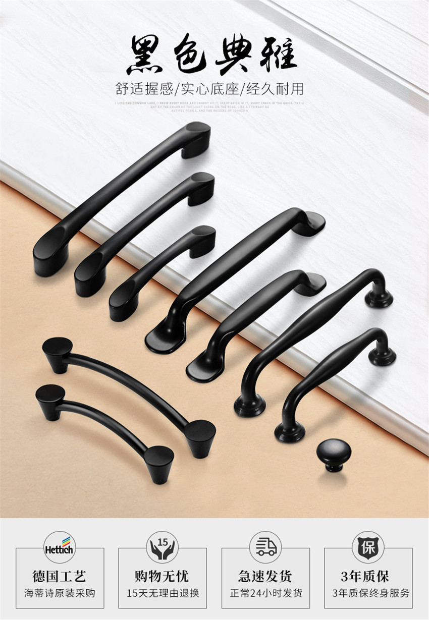 歐式抽屜拉手 美式亞黑色衣柜門(mén)拉手現(xiàn)代簡(jiǎn)約柜子把手櫥門(mén)家用五金 拉手黑色