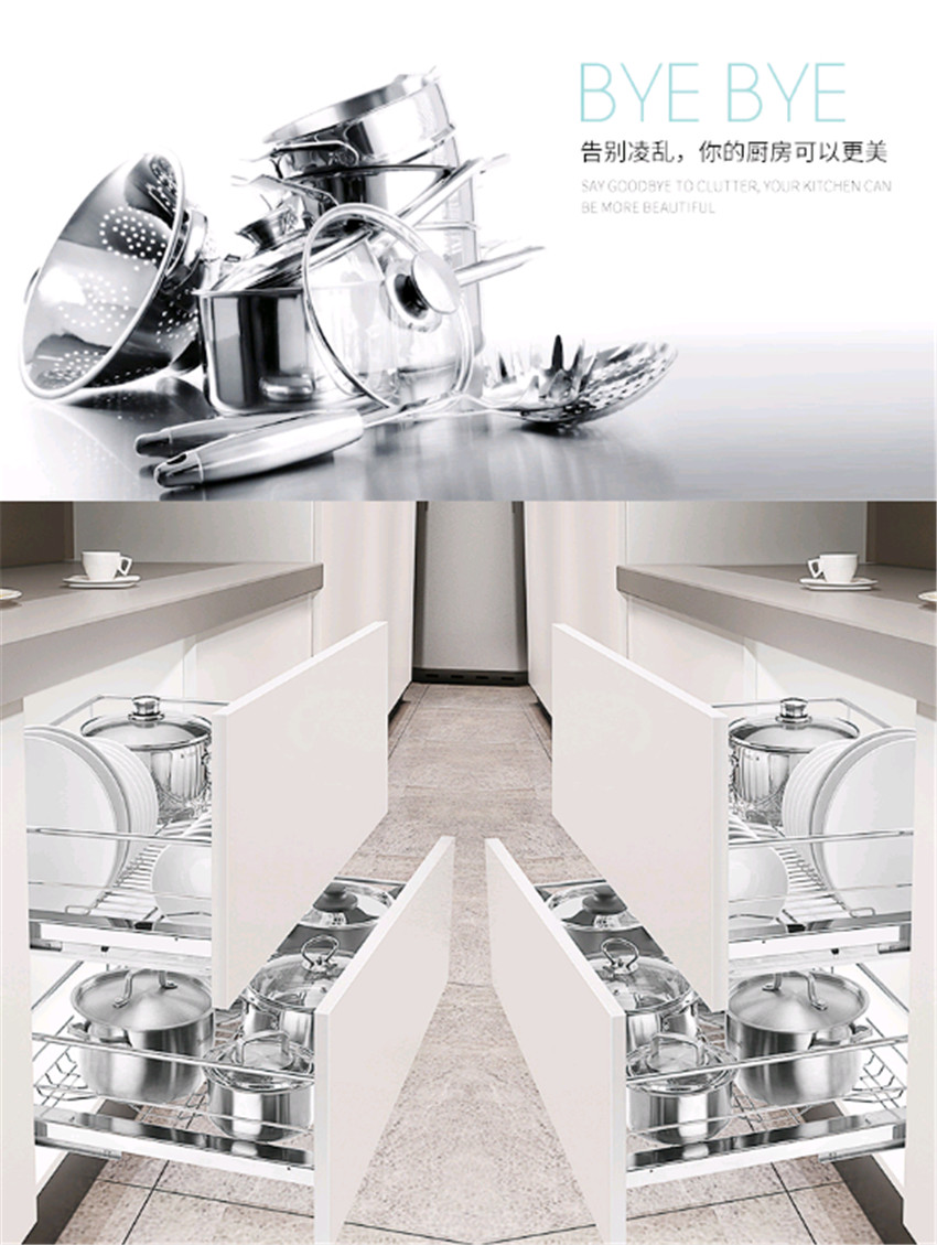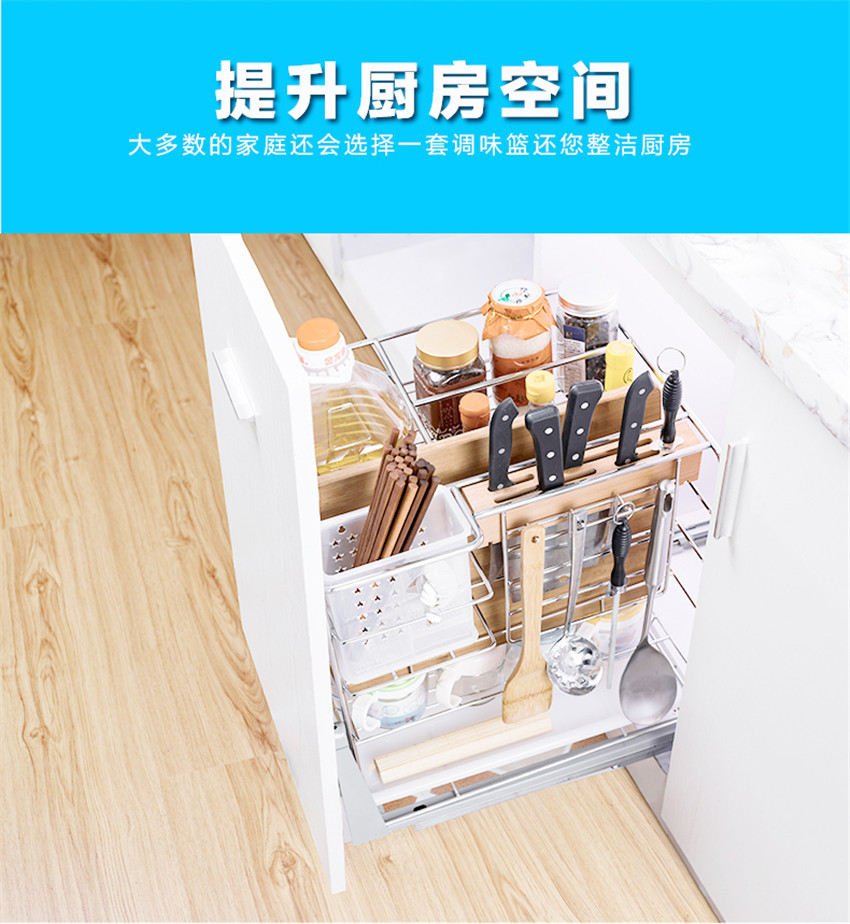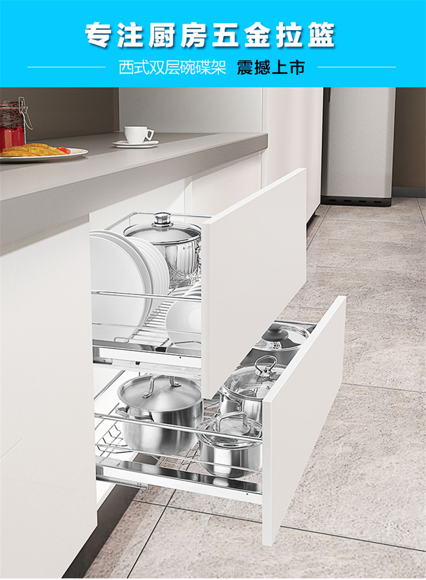 百隆阻尼軌道拉籃雙層調味籃304不銹鋼廚房櫥柜抽屜式碗架碗碟籃