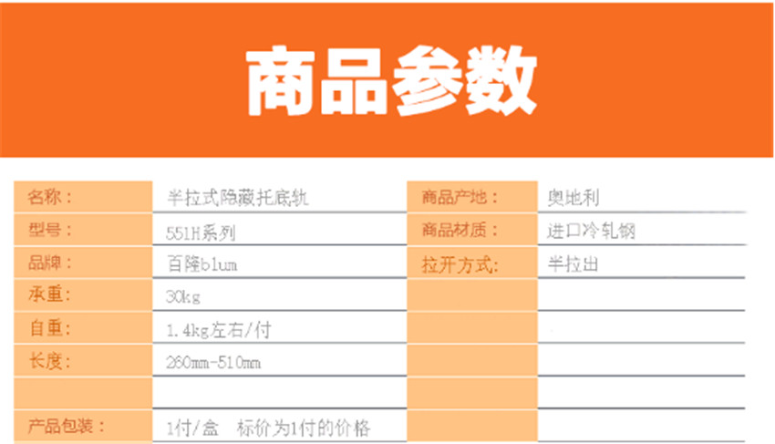 百隆半拉出阻尼抽屜軌道 緩沖滑軌托底軌 櫥柜抽屜導軌