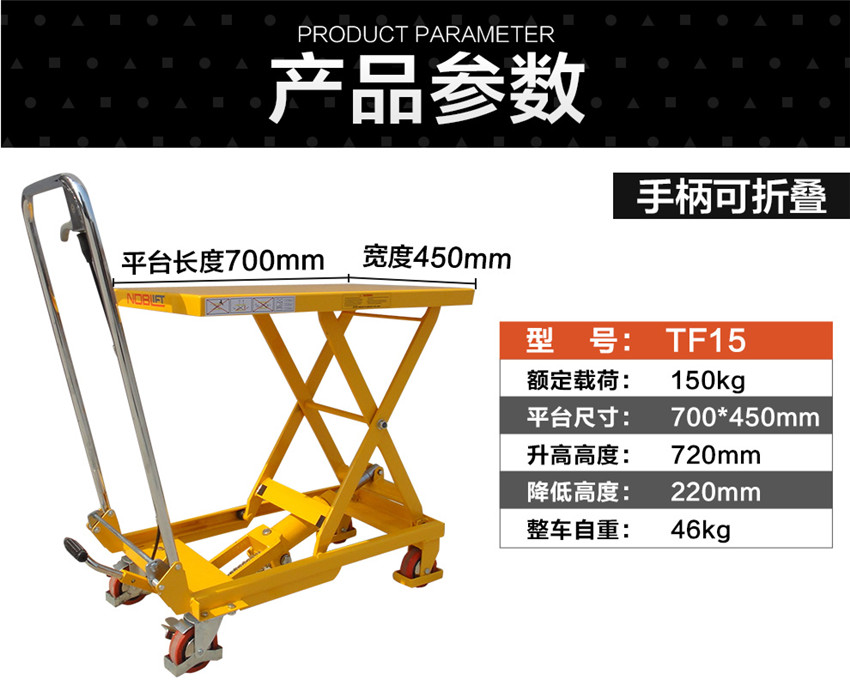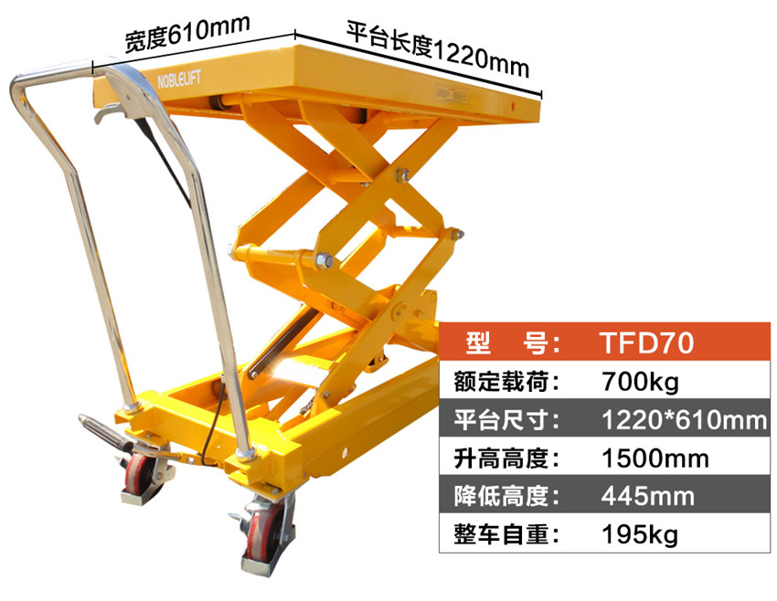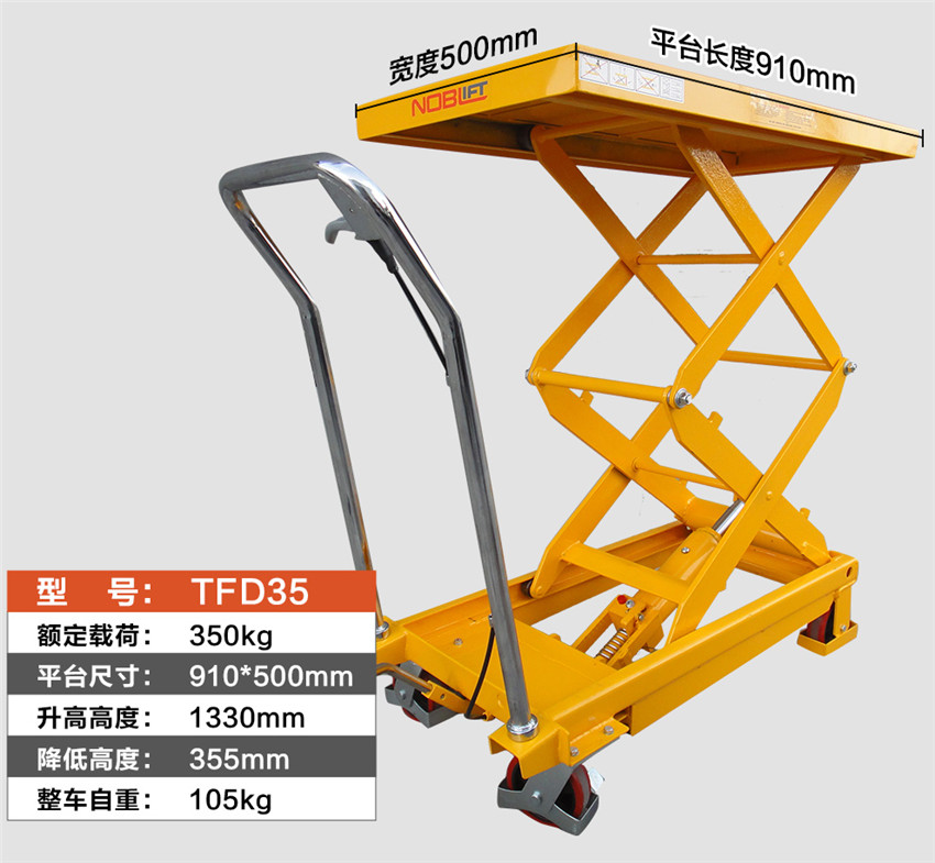 諾力(NOBLIFT) 諾力手動平臺車 移動液壓升降作業(yè)臺手推模具臺車TFD35升降叉車