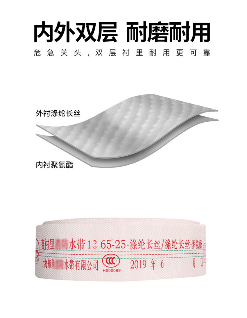 消防水帶8/10/13型65mm口徑2.5寸橡膠耐磨水帶DN65型20/25米消防水帶含接扣