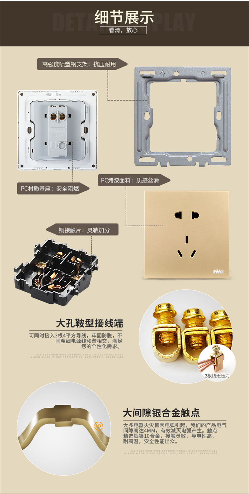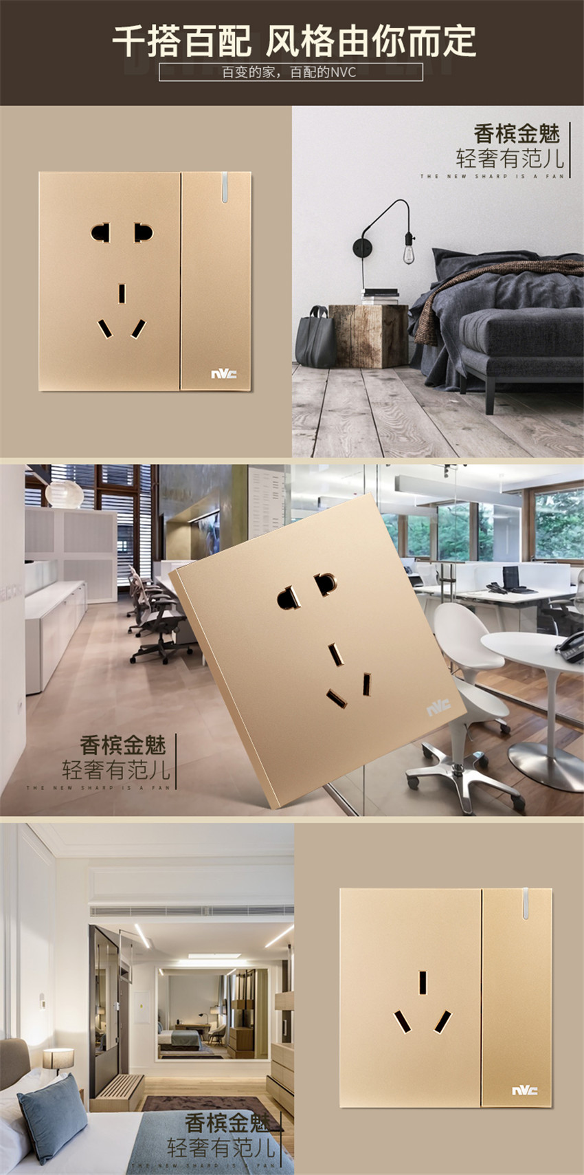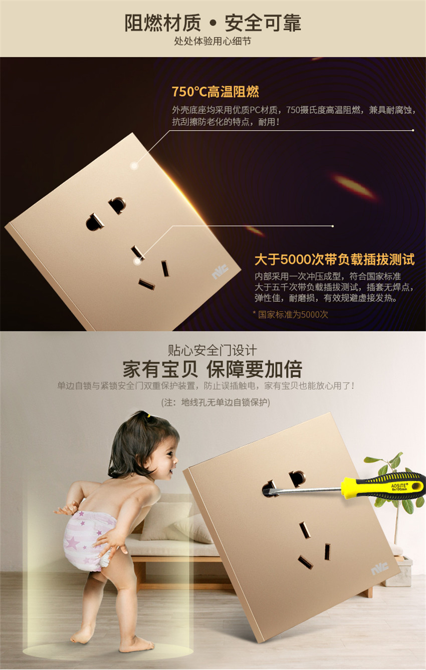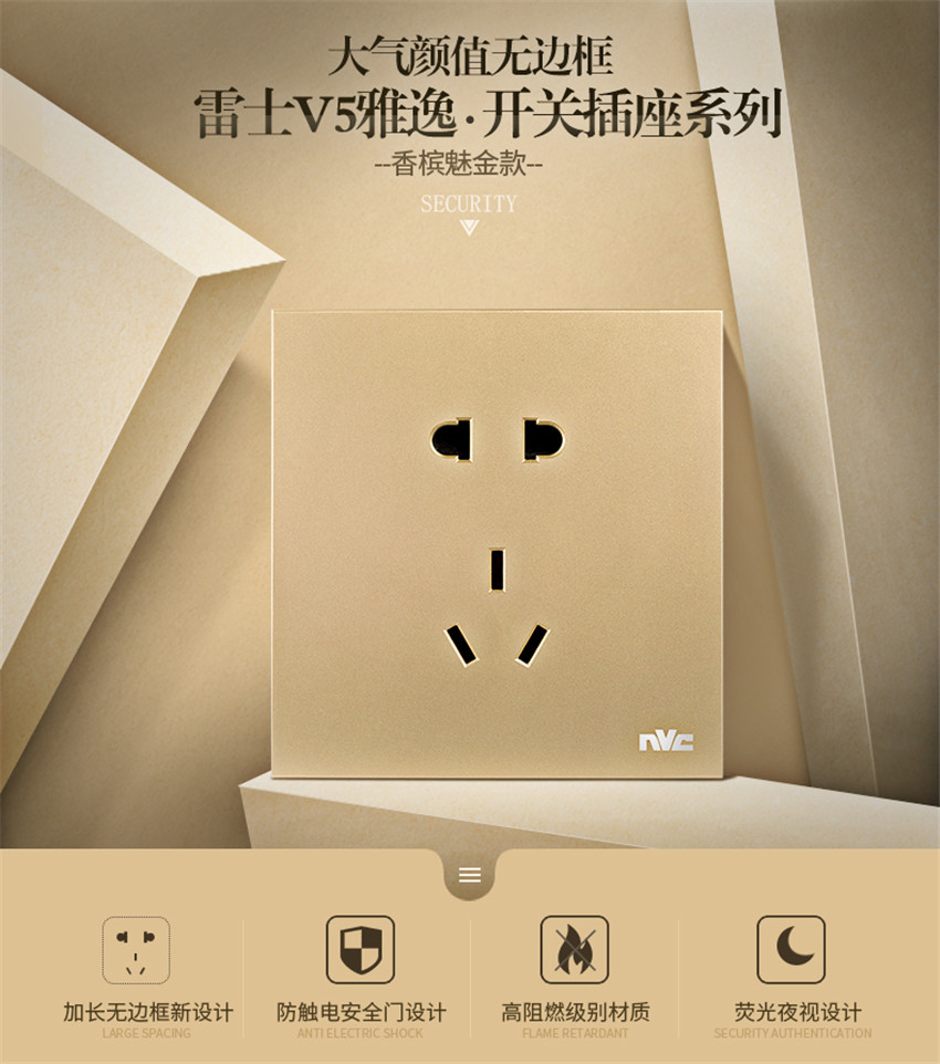雷士照明開關(guān)插座面板家用電源USB五孔插座86型暗裝面板V5金